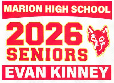 Celebrate your graduate with a MHS Class of 2026 yard sign. Signs are 18" x 24" and come with a metal stake to place in your yard. Orders are due no later than April 19th and signs will be available around April 29. Payment can be made online, or cash or check can be delivered to the MHS office, made payable to Marion High School Project Graduation 2026.